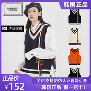 ROMANTIC CROWN20新款 v领外穿针织马甲背心宽松情侣马甲竖条百搭