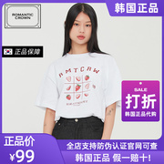 ROMANTIC CROWN2022夏季新款草莓宽松BINGO图案落肩袖纯棉短袖T恤