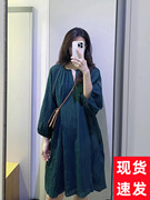 COS女装 宽松版型泡泡纱缩褶连衣裙深绿色2022夏季新品1089847001