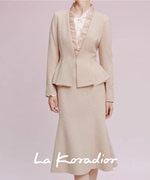 La Koradior拉珂蒂2023秋季新款V领纯色绵羊毛简约钉珠西服外套女