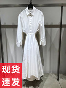 现货COS女装白色修身版型腰间镂空缩褶系带衬衫连衣裙1164242002