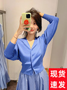 COS女装 标准版型V领羊毛混纺开衫蓝色2022秋季新品1094182002