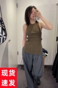 COS女装修身版型圆领罗纹背心墨绿2022春夏季新品1059273002