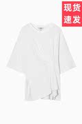 COS女装2023春季新品 休閒版型圆领不对称转褶T恤白色1152134001
