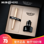 英雄钢笔正品男女生成人商务送礼书写练字办公笔礼盒套装可换墨囊礼品笔学生专用钢笔钛金笔免费刻字钢笔定制