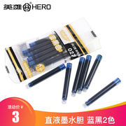 英雄钢笔墨囊学生用非碳素墨囊 027蓝黑色直插式直液墨水胆 6支装钢笔可擦墨囊笔囊三年级纯蓝色墨水书写工具