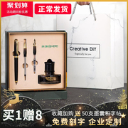 英雄钢笔正品礼盒套装 男女学生用成人练字书法铱金签字笔商务金属墨水笔 刻字定制款弯头美工尖老式办公钢笔