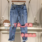 Eifini/伊芙丽正品2018秋国内代购破洞毛边牛仔裤1187458091