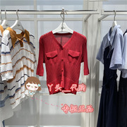 2021夏Eifini伊芙丽正品国内代购樱桃红V领中袖针织套衫1C5130852