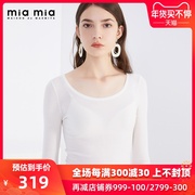 MIAMIA官方旗舰店2019秋新款撞色套头低领长袖打底针织衫8AD702F