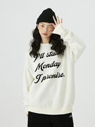 UnderStress手写英文加厚圆领全棉毛衣宽松休闲情侣针织衫秋冬潮