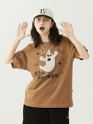 UnderStress尖叫幽灵情侣短袖宽松潮牌圆领咖啡棕T恤国潮半袖夏季