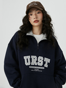 UnderStress撞色翻领Polo卫衣美式复古校园学院风半拉链情侣卫衣