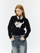 UnderStress (RS) 翘屁股小猫短款宽松毛衣基础百搭卡通针织衫秋