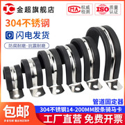 金超304不锈钢钢管卡扣夹U型带连胶条骑马卡箍管卡子固定电缆喉箍