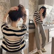 Sandro Moscoloni休闲运动套装女法式小心机短袖衬衫束脚裤两件套