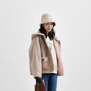 本依凡【线上】23年冬季女单排扣连帽插肩袖宽松短外套TSSPM0176