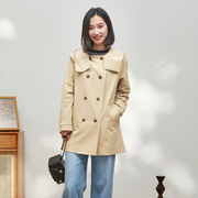 BBFER/本依凡春季女士纯色双排扣连帽风衣式短外套TYSWT0087