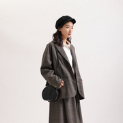 BBFER本依凡23年秋季女士格纹休闲版长西服时尚通勤外套TTSXF0017