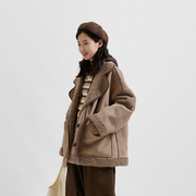 本依凡【线上】23年冬季女拼接宽松休闲加厚翻领短外套TSSPM0175