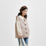 本依凡【线上】23年冬季女宽松牛角扣保暖无袖圆领马夹TSSPM0179