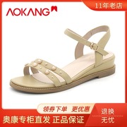 奥康专柜正品2021夏季新款时尚百搭舒适坡跟女凉鞋1212821022