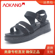 奥康女鞋 专柜正品夏季新品舒适厚底女凉鞋 1222821089黑色