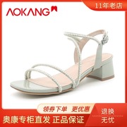 奥康正品2021夏季时尚舒适百搭中跟女凉鞋1212811113/1212811115
