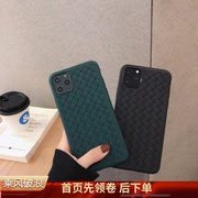 透气新款iPhonexsmax手机壳苹果11编织纹皮套保护套7/8plus软暗绿