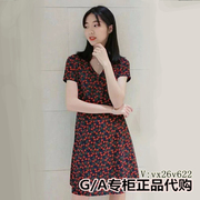 哥弟专柜正品19新款红花色V领短袖连衣裙女夏1500152-8103811-001