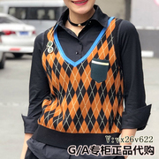 阿玛施专柜女装19秋新款V领修身百搭格子背心针织衫女马甲5399060