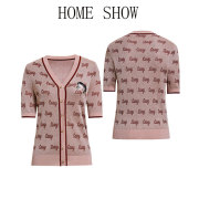 红袖妍2020秋款贝蒂提花字母亮丝V领坑条针织衫开衫女90120230104