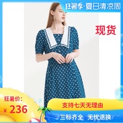 影儿诗篇2021年夏复古宫廷风学院翻领波点A字连衣裙6C51205467