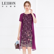 LEIHON李红国际咖色豹纹丝绒纱袖假两件长袖连衣裙36353#01标968