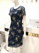 李红国际2019短袖连衣裙W37356蕾丝印花立体剪裁显瘦大码数裙1180