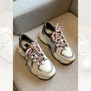 小CKerwin 老爹鞋女潮2023年夏季新款时尚拼色系带网红厚底运动鞋
