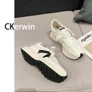 小CKerwin 真皮高级感厚底运动鞋女2022冬圆头老爹鞋洋轻便休閒鞋
