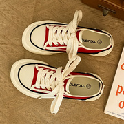 小CKerwin 原宿小众红色帆布鞋女潮2023新款复古港风休闲chic板鞋