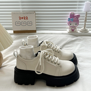 小CKerwin 英伦风小皮鞋2023新款百搭小个子增高系带圆头厚底松糕