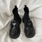 小CKerwin 马丁靴女英伦风连袜靴小皮鞋2022年新短靴子秋冬季加绒