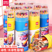 得力油性彩色铅笔24色水溶性彩色铅笔36色小学生划划专用儿童幼儿园手绘涂色美术生48色专业彩铅划笔可擦12色水性