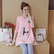 2 孕妇中长款t恤秋冬装韩版百搭蕾丝打底衫秋季哺乳宽松条纹上衣服 63.00 详情