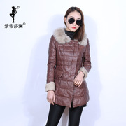 紫帝莎澜女装2017新款狐狸毛领绵羊皮羽绒修身中长款外套18877-1