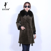 紫帝莎澜女装2017狐狸毛领羊剪绒皮草大衣休闲中长外套YJR71230T1