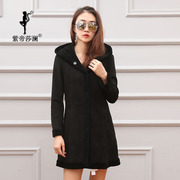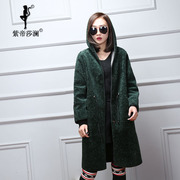 紫帝莎澜女装2017款连帽绵羊皮皮衣羊羔毛内里中长外套MYP70901T3