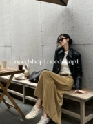 NeedShop12022年早秋新款黑色金属扣翻领定制版短款夹克皮衣女
