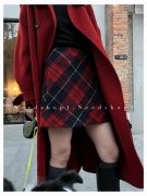 NeedShop12022秋冬新款复古红格子圣诞新年百搭羊毛短裙半身裙