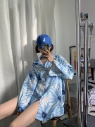NeeDshop12020春夏新款法式小众蓝色雏菊花朵宽松防晒衫衬衫女