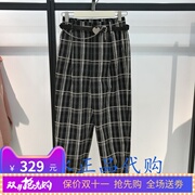 太平鸟女装2020冬季新款A5GBA4A08配腰带格纹长裤A5GBA4A08B8